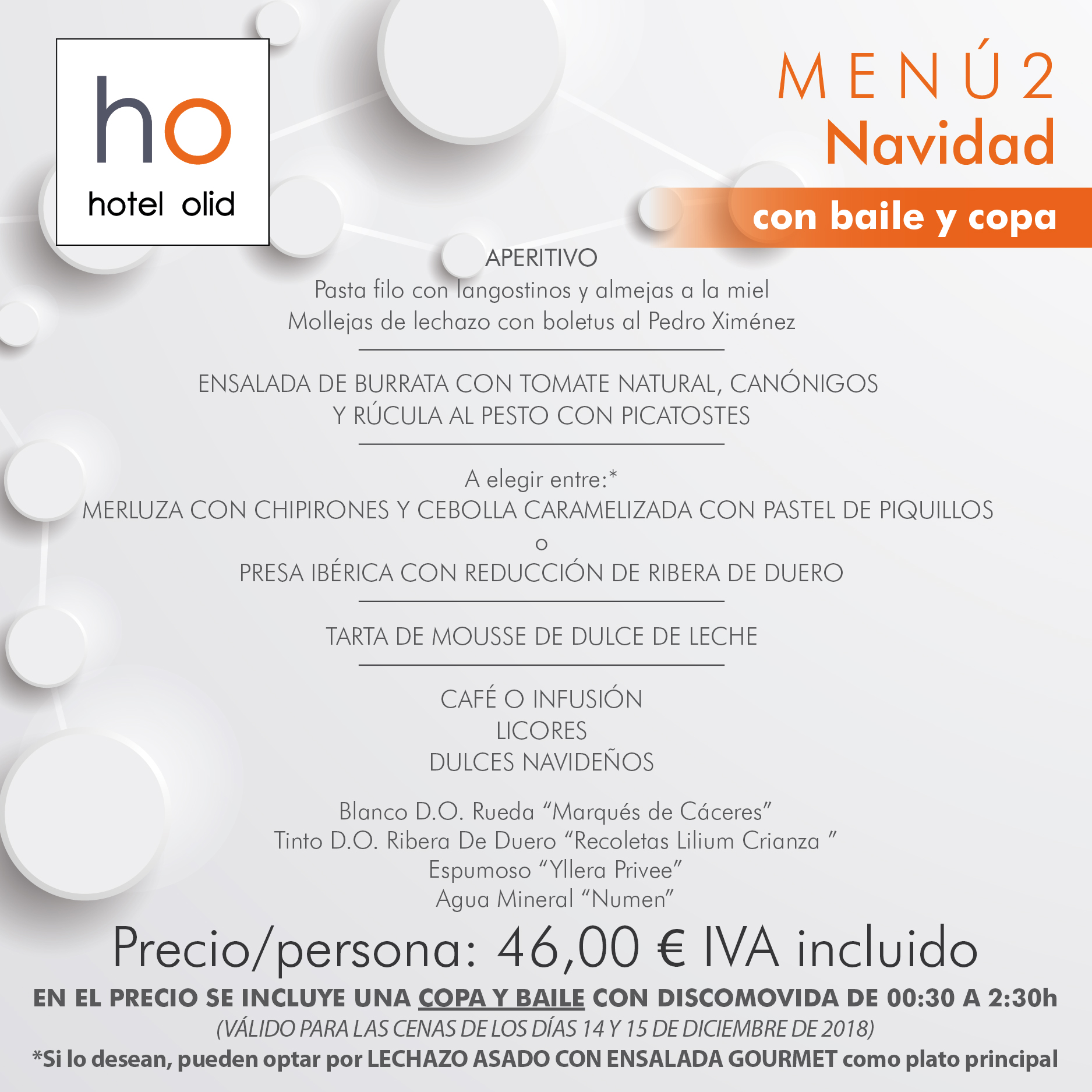 No pierdas la oportunidad de reservar nuestra cena con baile y copa: 2 menús a elegir y mucha diversión por delante.